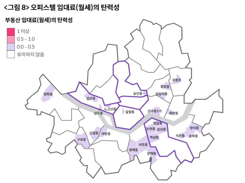 강남 3구의 오피스텔 임대료가 상대적으로 영향이 컸습니다.