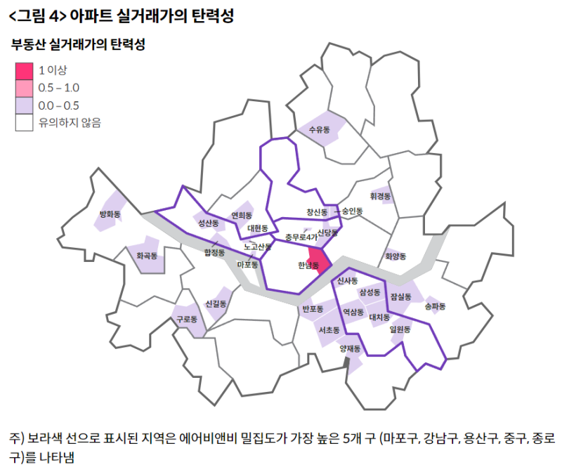 그리고 보라색 굵은 선으로 표시된 구는 에어비앤비 밀집도가 높은 구라고 보시면 됩니다.