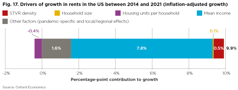 그렇다면 정말로 단기렌탈이 해당 도시의 임대료 상승에 큰 영향을 미칠까요?