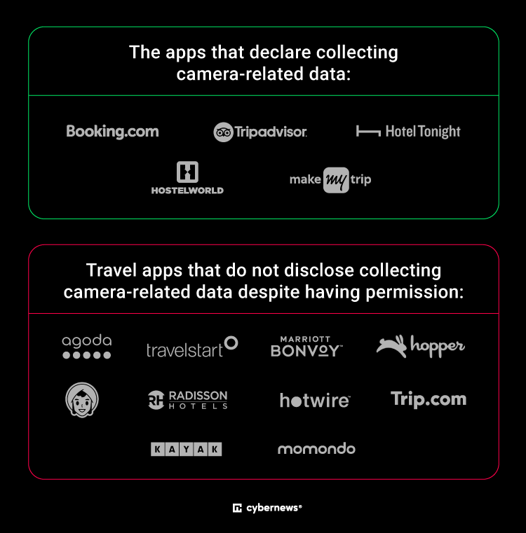 부킹닷컴, 트립어드바이저, 호텔투나잇 등 5개 앱은 카메라 관련 권한을 요청했습니다.