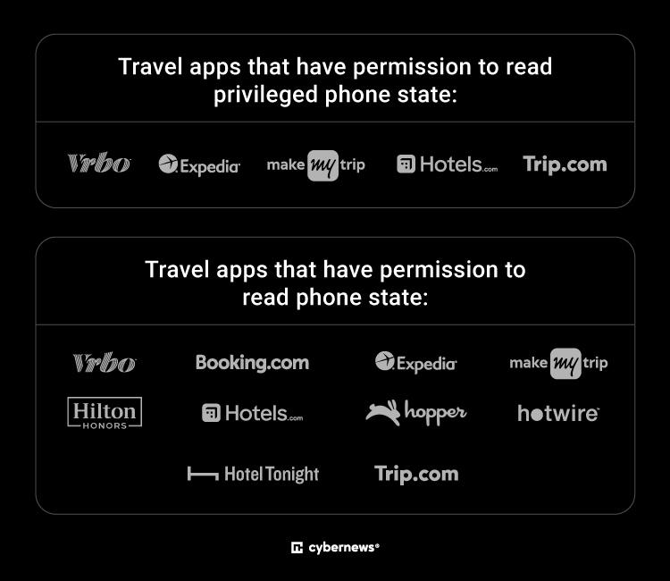 버보, 익스피디아, 메이크마이트립 등 5개 앱은 구체적인 휴대폰 정보에 대한 권한을 요청했습니다.