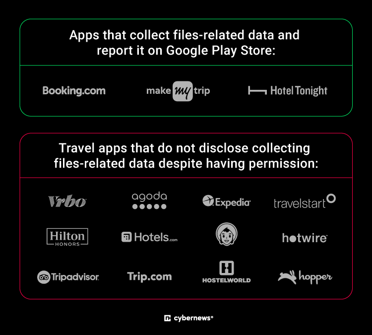 부킹닷컴 등 3개 앱은 파일 관련 권한을 요청했습니다.