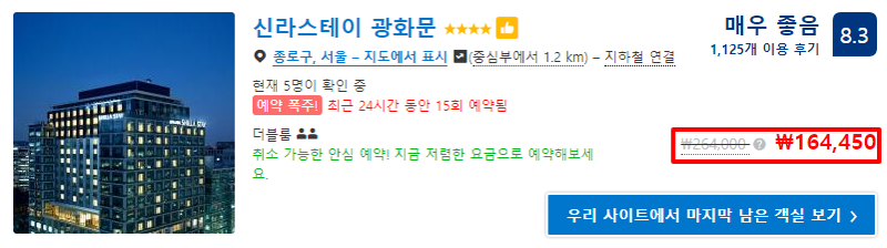 이 때 '이 타입의 방은 4개 남아있습니다.'라는 문구만 나오면 마치 매우 잘 팔리는 방 같아 보이는 것이죠.
