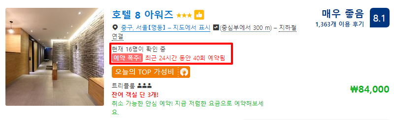 온라인 예약 사이트를 들어가시면 늘 보이는게 '이 방은 XX명이 보고 있습니다.', '이 타입의 방은 X개 남아있습니다.' 같은 문구인데요.