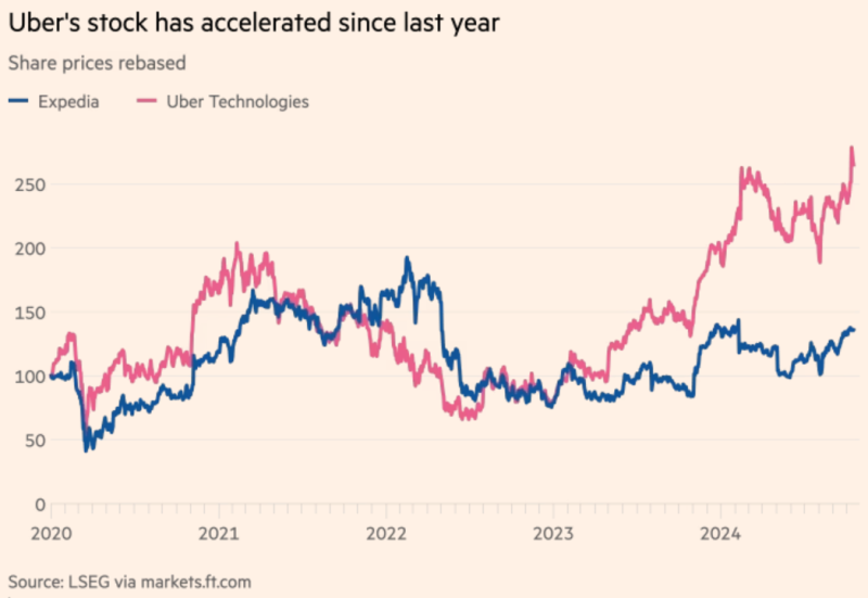 이 기사가 발표되고 우버의 주가는 하락한 반면, 익스피디아의 주가는 상승했습니다.
