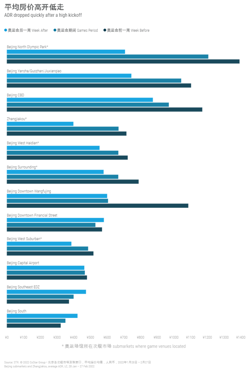 올림픽 공원 지역의 ADR은 1400위안(27만원)까지 올라갔습니다.