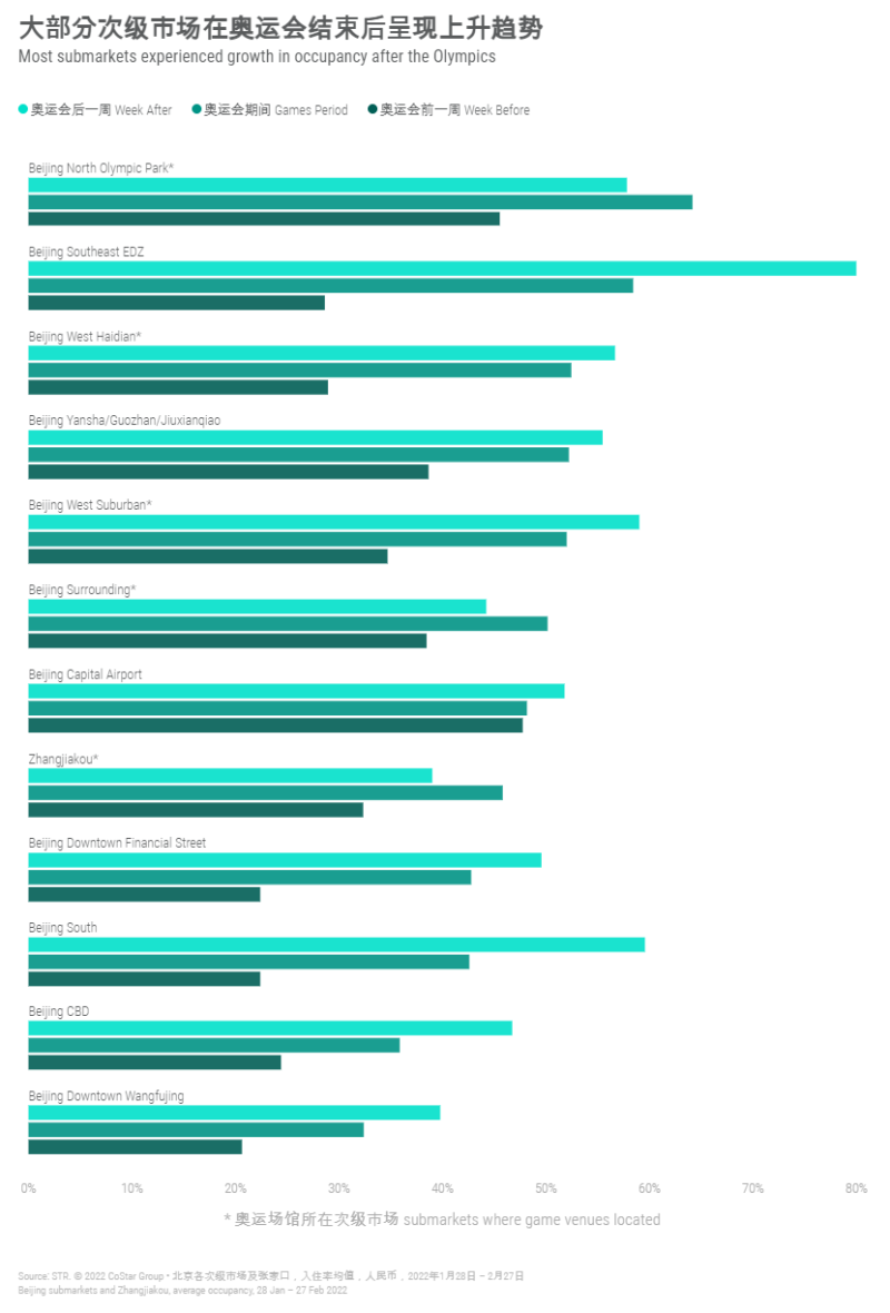 대체로 개막 직전 주 대비 올림픽 기간 동안의 객실점유율은 크게 상승했습니다.