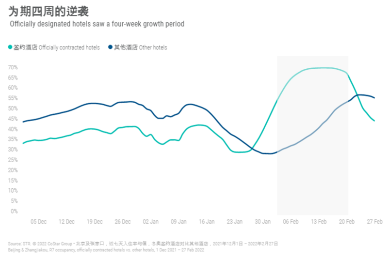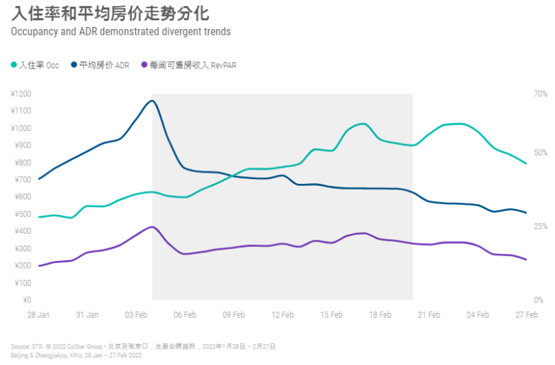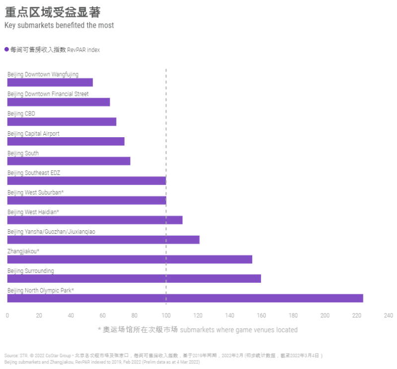 올림픽 공원 부근, 베이징 외곽, 베이징 북서쪽 도시인 장자커우의 RevPAR가 2019년 대비 높은 모습을 보였습니다.