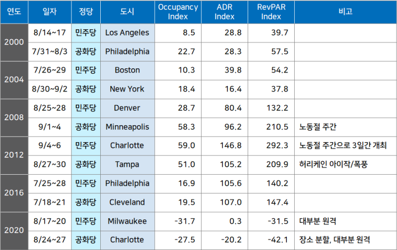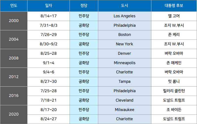 [이슈와 호텔] 역대 미국 대선 전당대회(2000~2020)