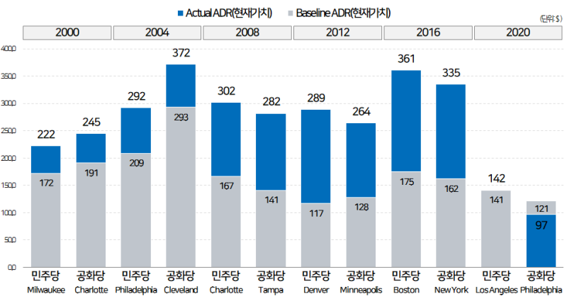 심지어 민주당은 코로나 시기에도 ADR이 평년 대비 소폭이나마 높았네요.