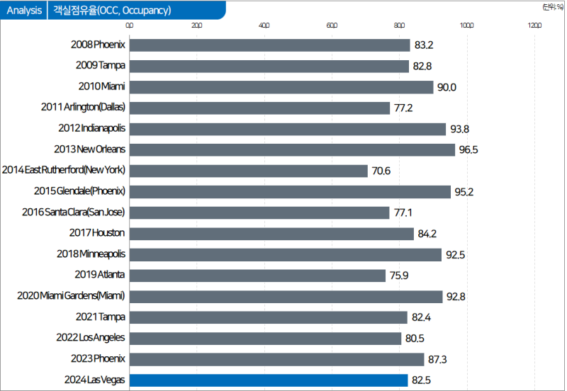 다른 해 슈퍼볼 지역의 객실 점유율에 비하면 평균적인 수준인데요.