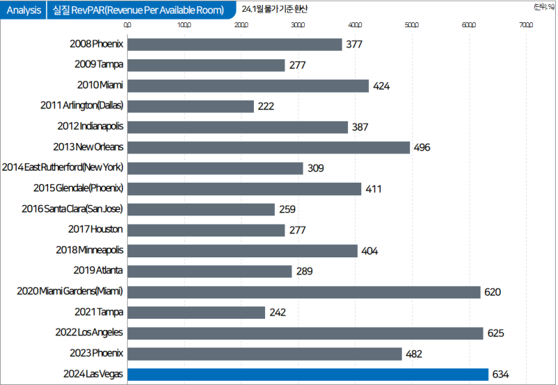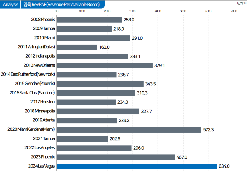 마지막으로 라스베가스의 RevPAR는 634달러로 역시 슈퍼볼 역사상 최고치를 기록했습니다.