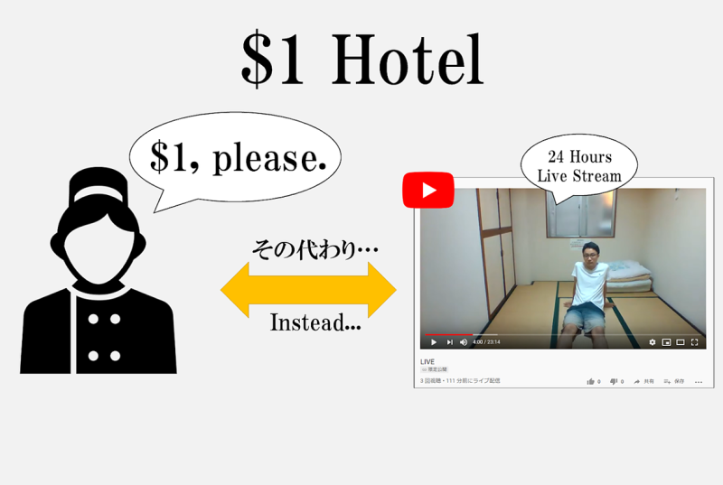 『宿泊料金$1 × Live Streaming』 "Accommodation fee is only $1. Instead, we Live-Stream our room for 24 hours" 【これまでの経緯】 博多にある”あさひ旅館”は老朽化のためか平日は予約がほとんど入りません... ⇒でも宿...
