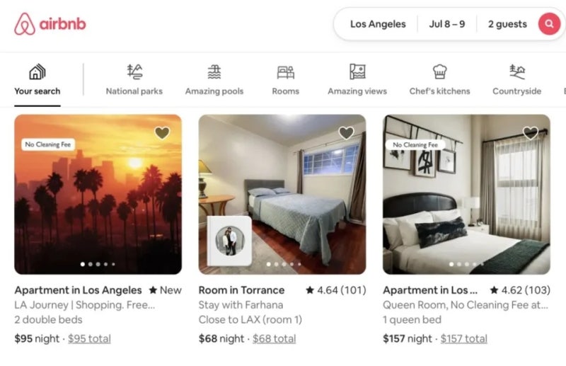 심지어 Airbnb와 Vrbo는 캘리포니아 사용자들에게 새로운 가격 표시 방식에 대한 팝업 메시지까지 제공했습니다.