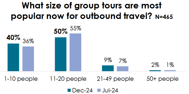 10명 이하 그룹 여행 수요가 40%에 달할 정도로 소규모 여행을 선호하고 있습니다.