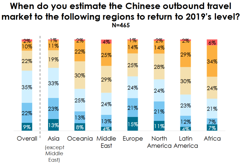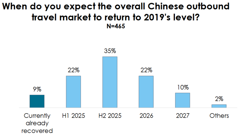 조사 결과 총 66%의 응답자가 2025년 말까지 전체 여행시장이 팬데믹 이전 수준으로 회복될 것으로 예상했습니다.