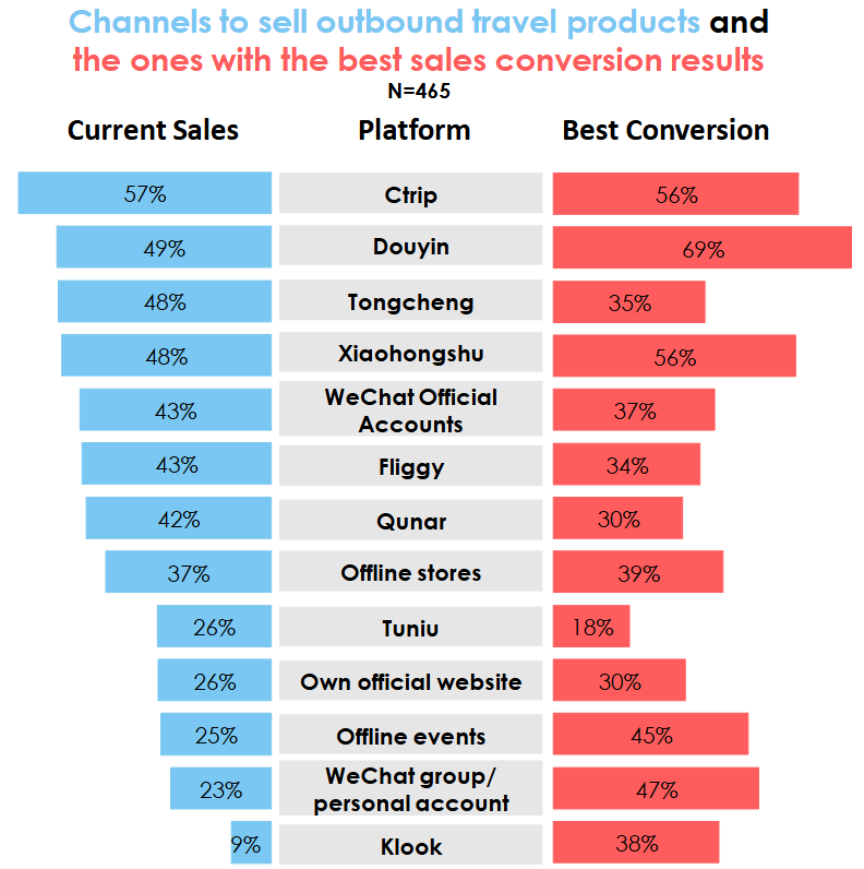 도우인(69%), 샤오홍슈(56%)와 같은 새로운 플랫폼의 전환율이 매우 높았습니다.