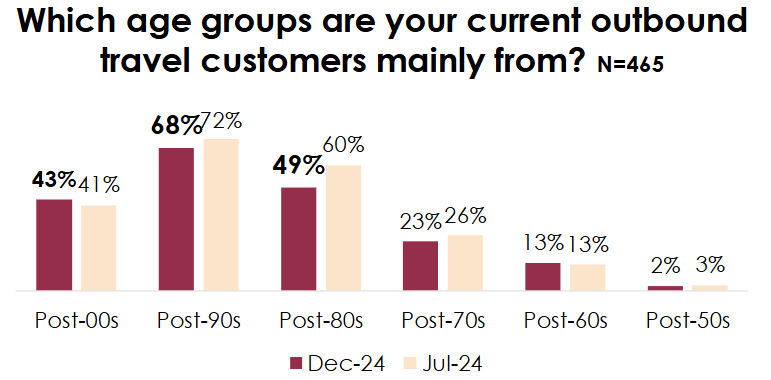연령별로는 젊은 세대의 여행이 중심이 되고 있습니다.
