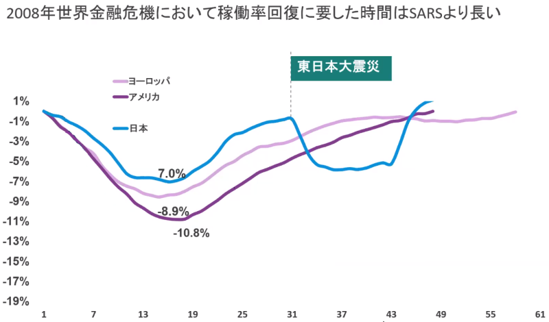 즉, 2008년 위기 이후 이전 수준을 회복하는데 최대 5년이 걸렸다는 의미입니다.