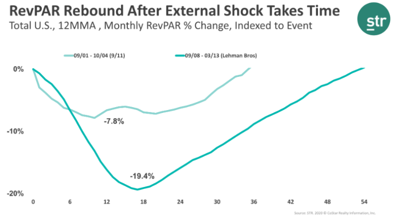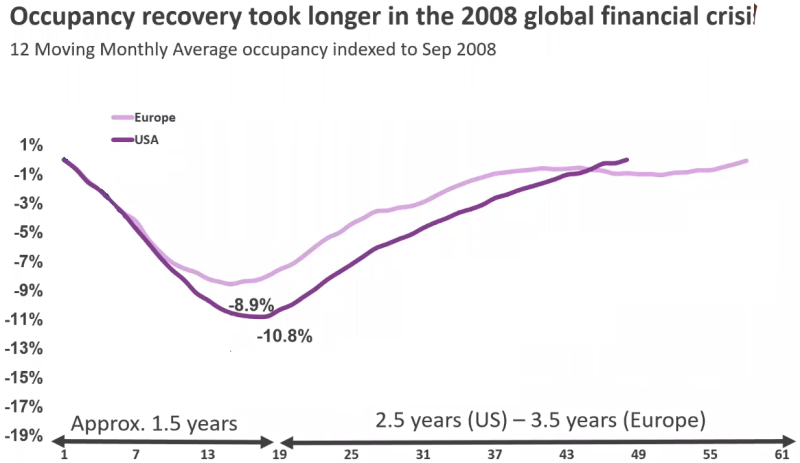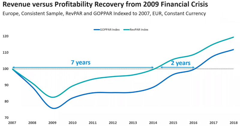 그럼 글로벌 금융위기 당시 RevPAR에 대해서 알아보겠습니다.