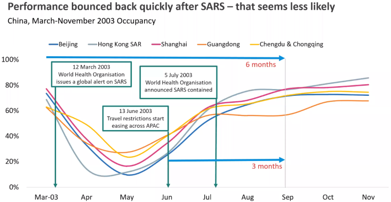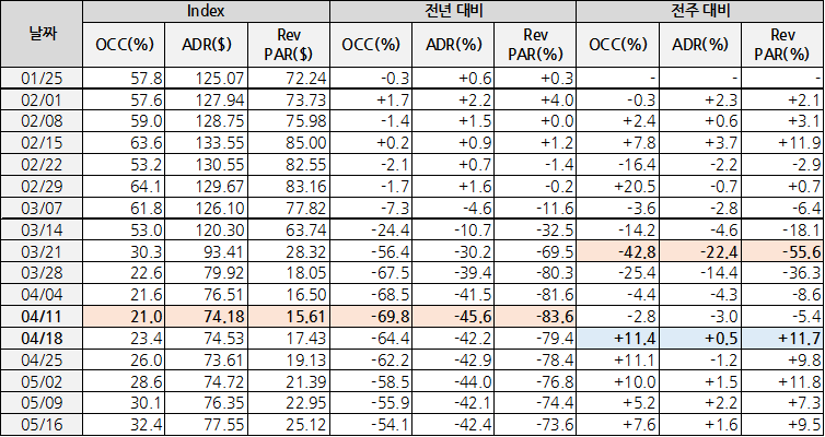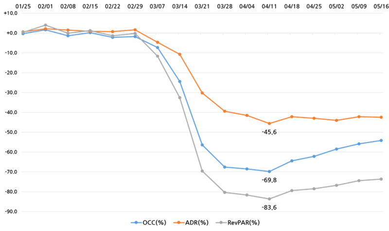 이번 코로나 바이러스처럼 객실 점유율은 한 자리수까지 내려가는 모습이네요.