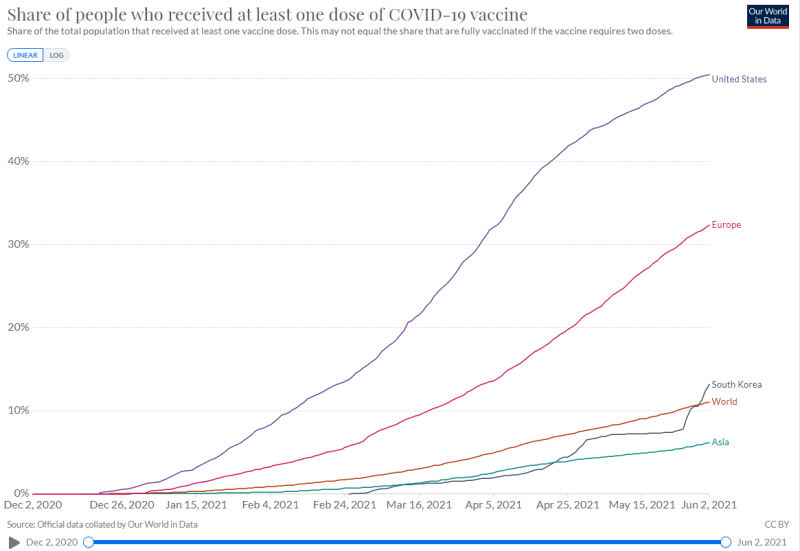 일부 분들은 미국과 우리나라 접종 시작 시기는 2달 정도 차이가 나지만 집단면역 달성 시점은 크게 차이가 안날꺼라고;;;