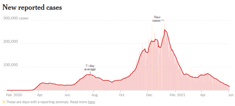 이후 백신이 접종되면서 신규 확진자 수는 크게 감소했습니다.