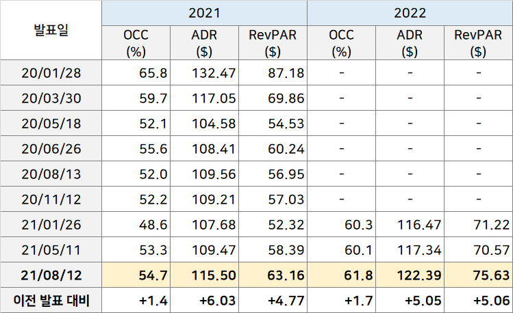 2022년에는 객실점유율(OCC)이 60%를 넘어서고,