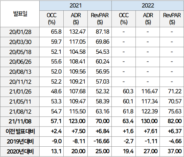 지난 6월에 미국호텔의 연간 실적 전망치를 소개해 드렸는데요. 지난 8월에 업데이트가 나와서 소개드립니...