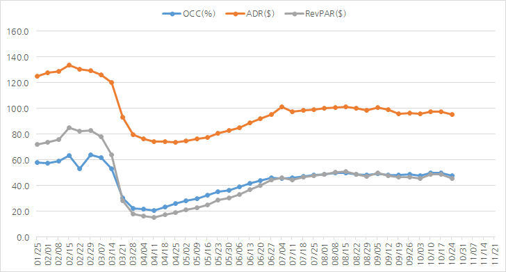 -객실점유율(OCC, Occupancy): 38.9%(-51.7%)