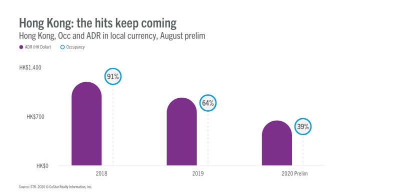 민주화 운동으로 인해 전년도부터 하락한 객실점유율이 올해 코로나와 국가보안법 통과까지 이뤄지며 회복이 늦어지고 있습니다.