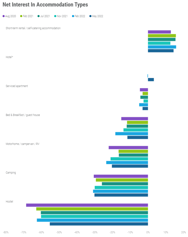 위 그래프를 보시면 코로나 이후 고객들의 숙박시설 종류별 선호도 변화를 보실 수 있는데요.