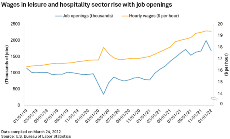 하지만 이러한 채용 수요가 충족되지 않으면서 시간당 임금 역시 크게 상승하고 있습니다.