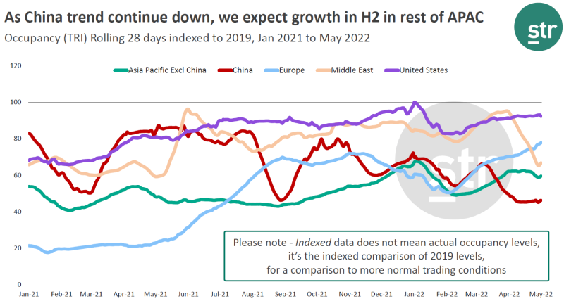 중국을 제외하면 전반적으로 2019년 수준을 회복했거나 상회하는 모습을 보이고 있습니다.