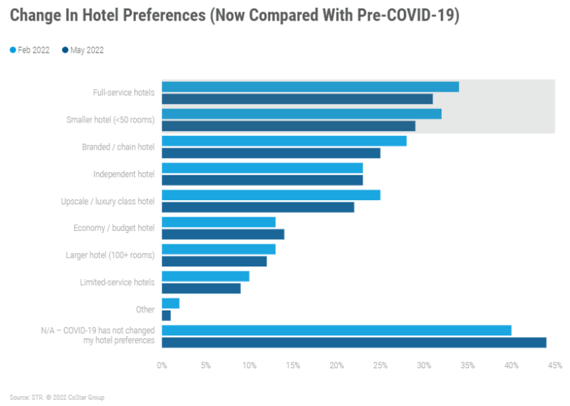 풀서비스/소형/글로벌체인/력셔리 호텔에 대한 선호가 크게 증가한 것을 알 수 있습니다.