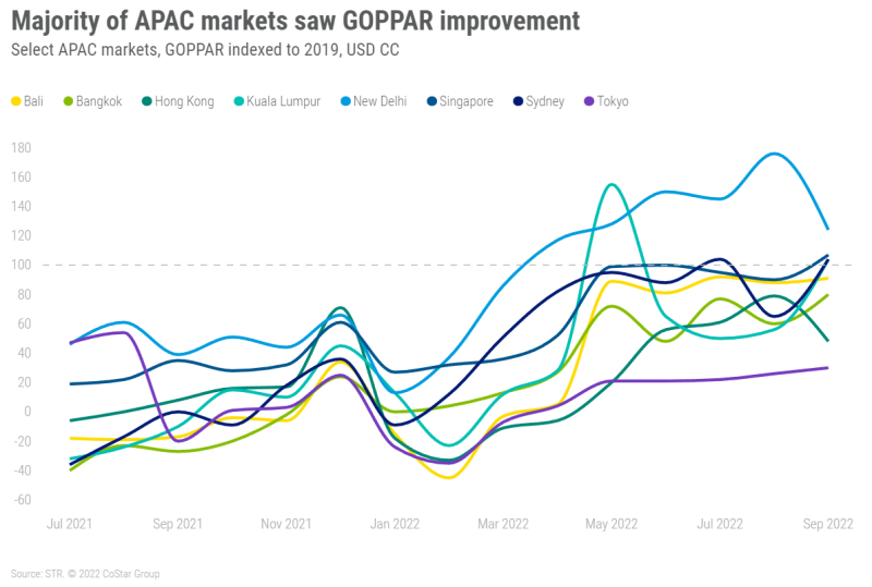 뉴델리, 싱가포르, 시드니 등은 코로나 이전 수준을 넘어서고 있습니다.