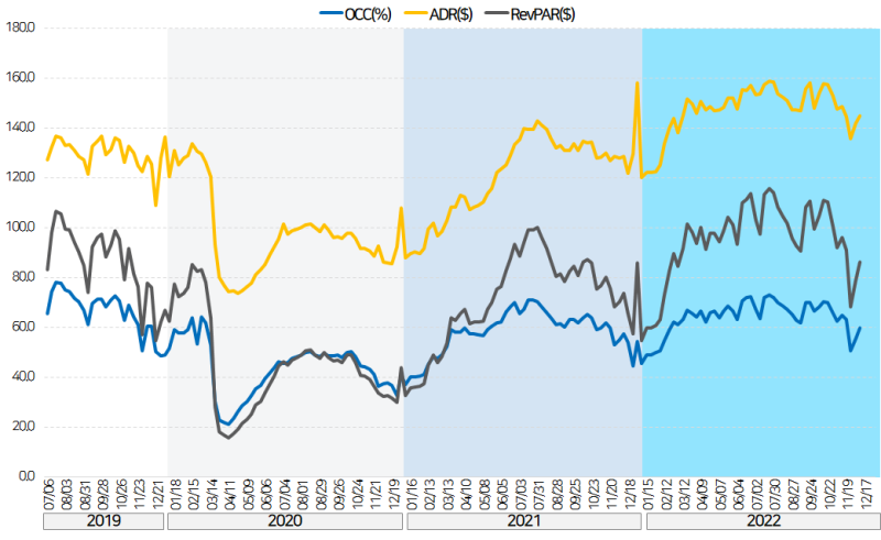 특히 ADR은 코로나 이전을 상회하고 있는데요.