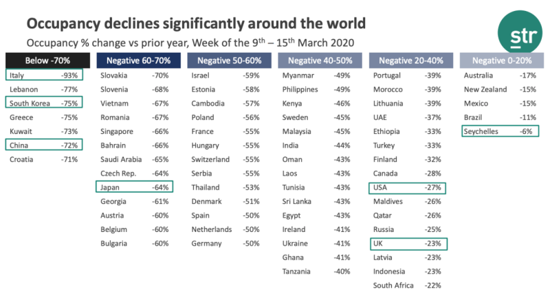 STR에서 코로나 바이러스로 인한 객실점유율(OCC) 하락 현황을 발표했는데요.중국의 하락은 지난 2월...