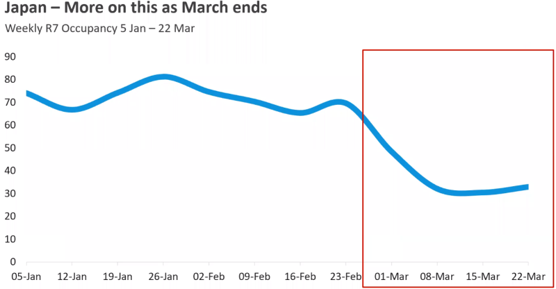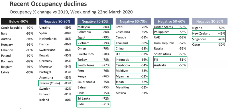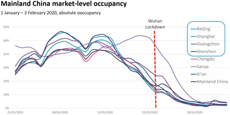 STR에서 코로나 바이러스로 인한 객실점유율(OCC) 하락 현황을 발표했는데요.중국의 하락은 지난 2월...