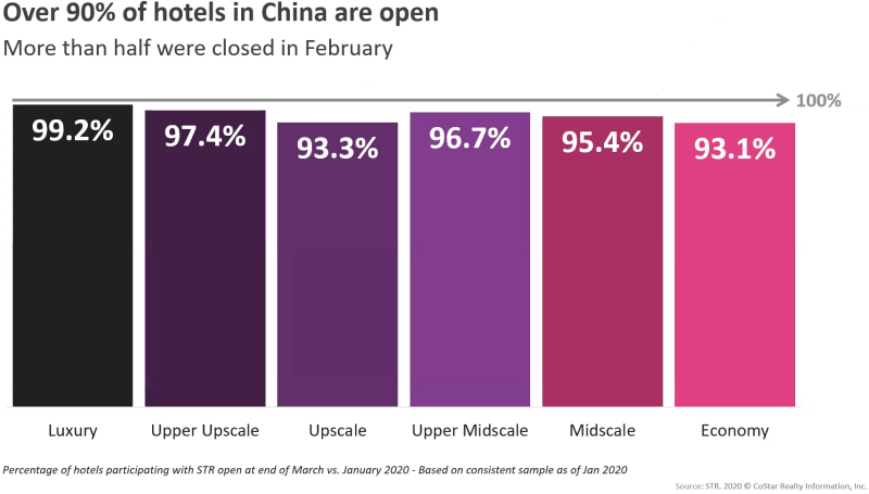 클래스별로 2월 대비 오픈한 호텔의 비율은 대체로 95%를 넘어서 사실상 정상화가 되었다고 볼 수 있겠습니다.