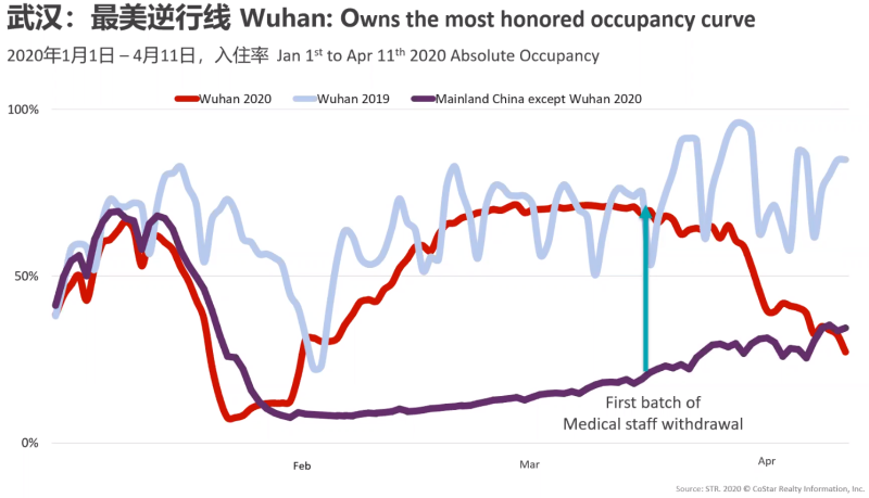 여튼 의료진 제공으로 인해 OCC가 크게 반등했지만, 3월 중순부터 봉쇄가 끝나고 의료진이 철수하자 결국 중국 호텔의 평균 수준으로 돌아왔습니다.