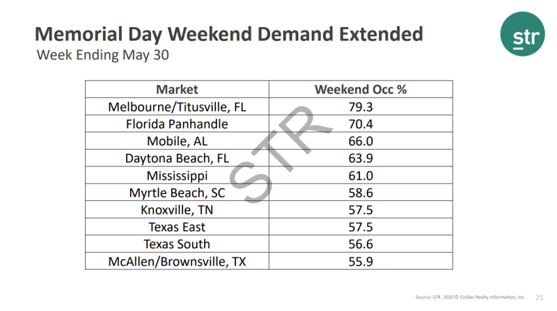 또한 미국 메모리얼 데이(미국판 현충일, 5/25)가 있었던 한 주 였기에 주말 객실점유율이 크게 올랐습니다.