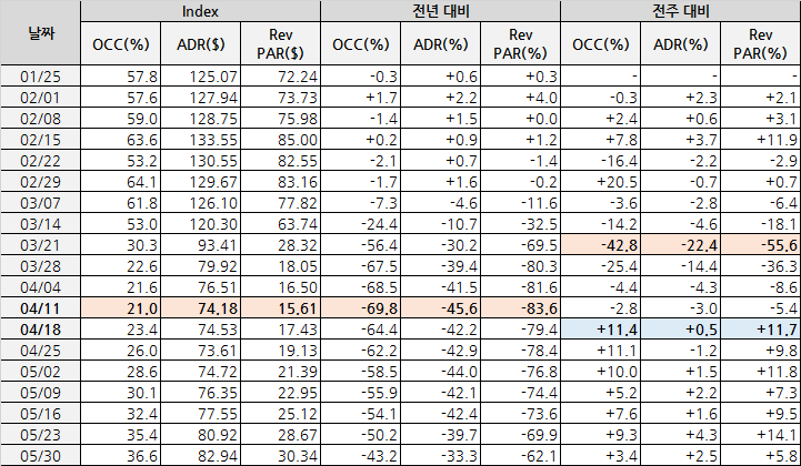 -객실점유율(OCC, Occupancy): 36.6%(-43.29%)