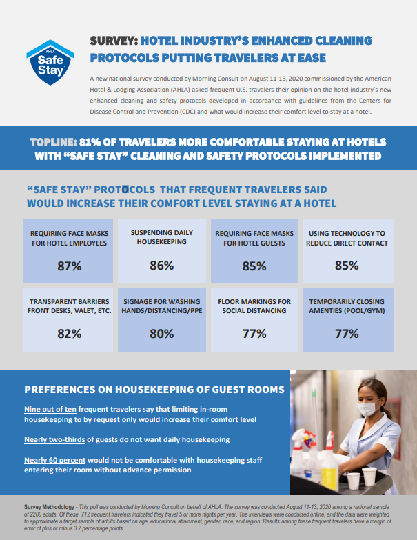 A new national survey commissioned by AHLA and conducted by Morning Consult shows top priorities among frequent travelers, including face coverings.