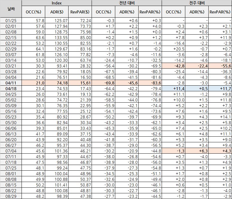 -객실점유율(OCC, Occupancy): 48.2%(-27.7%)