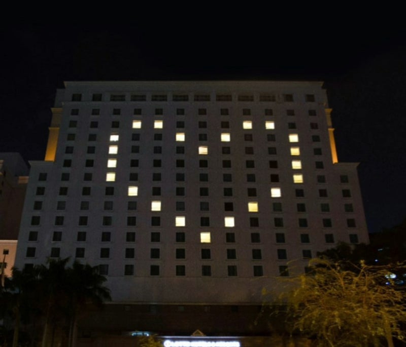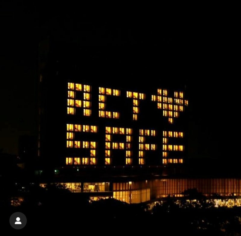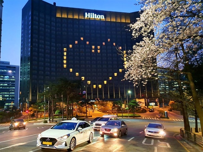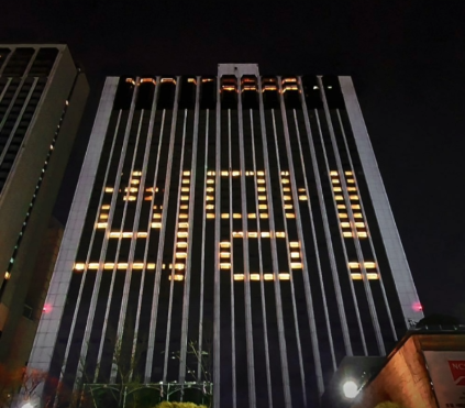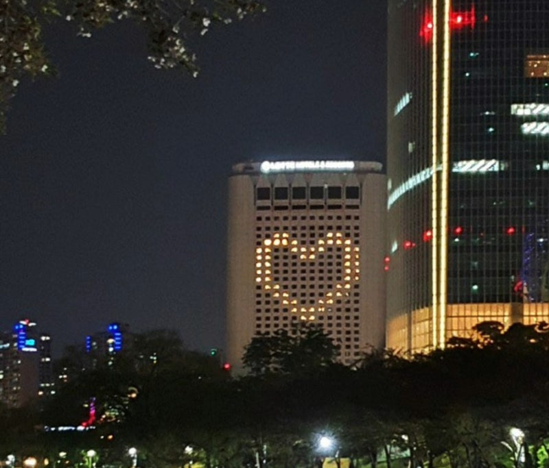 그리고 지난번 포스팅에서 나이아가라 폭포 호텔들이 시작한 빈 객실의 조명을 활용한 메세지 표현이 우리나라에서도 활발히 진행되고 있습니다.