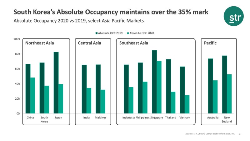 연간 객실점유율을 아시아와 호주 권역 국가들과 비교해보면,
