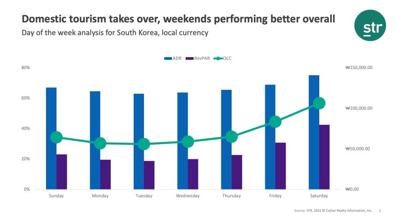 ADR과 RevPAR 역시 주말에는 상승하는 모습을 보였습니다.