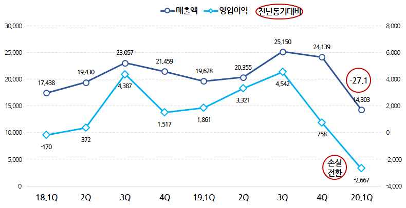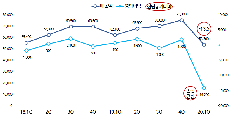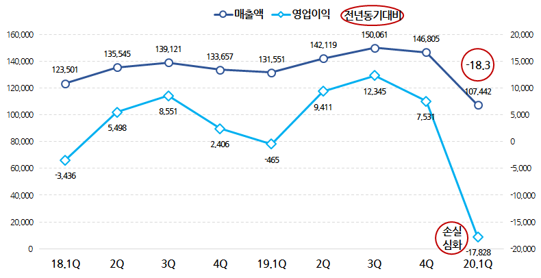 그런데 코로나로 인해 2020년 1분기에만 600억대 영업손실을 기록하면서 올해는 쉽지 않게 되었습니다.