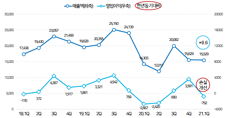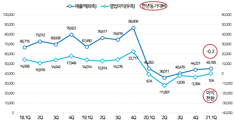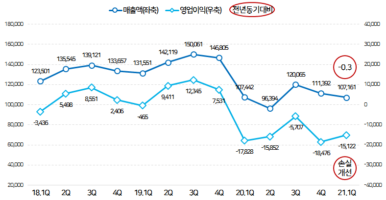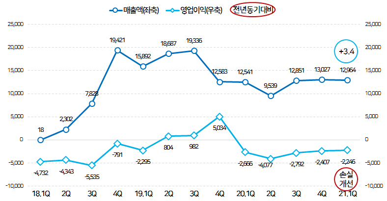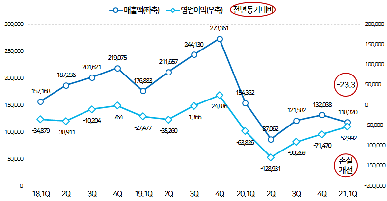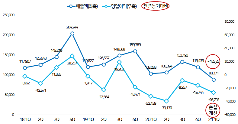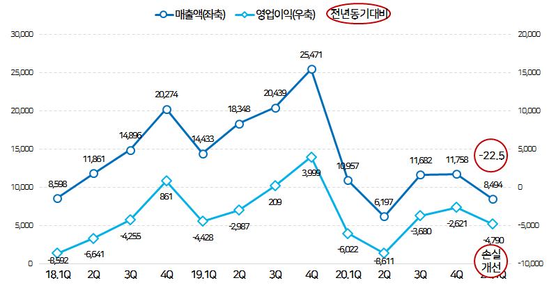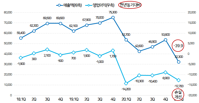 영업이익을 기록했던 전 분기에 비해서는 나빠졌으나, 전년 동기 대비로는 개선되었습니다.